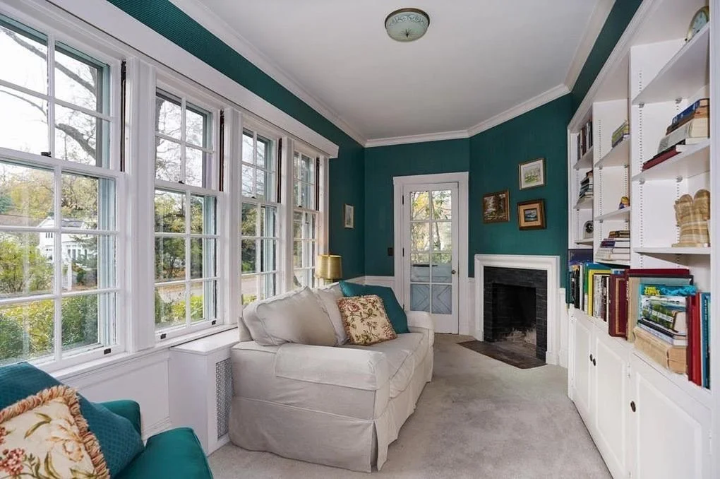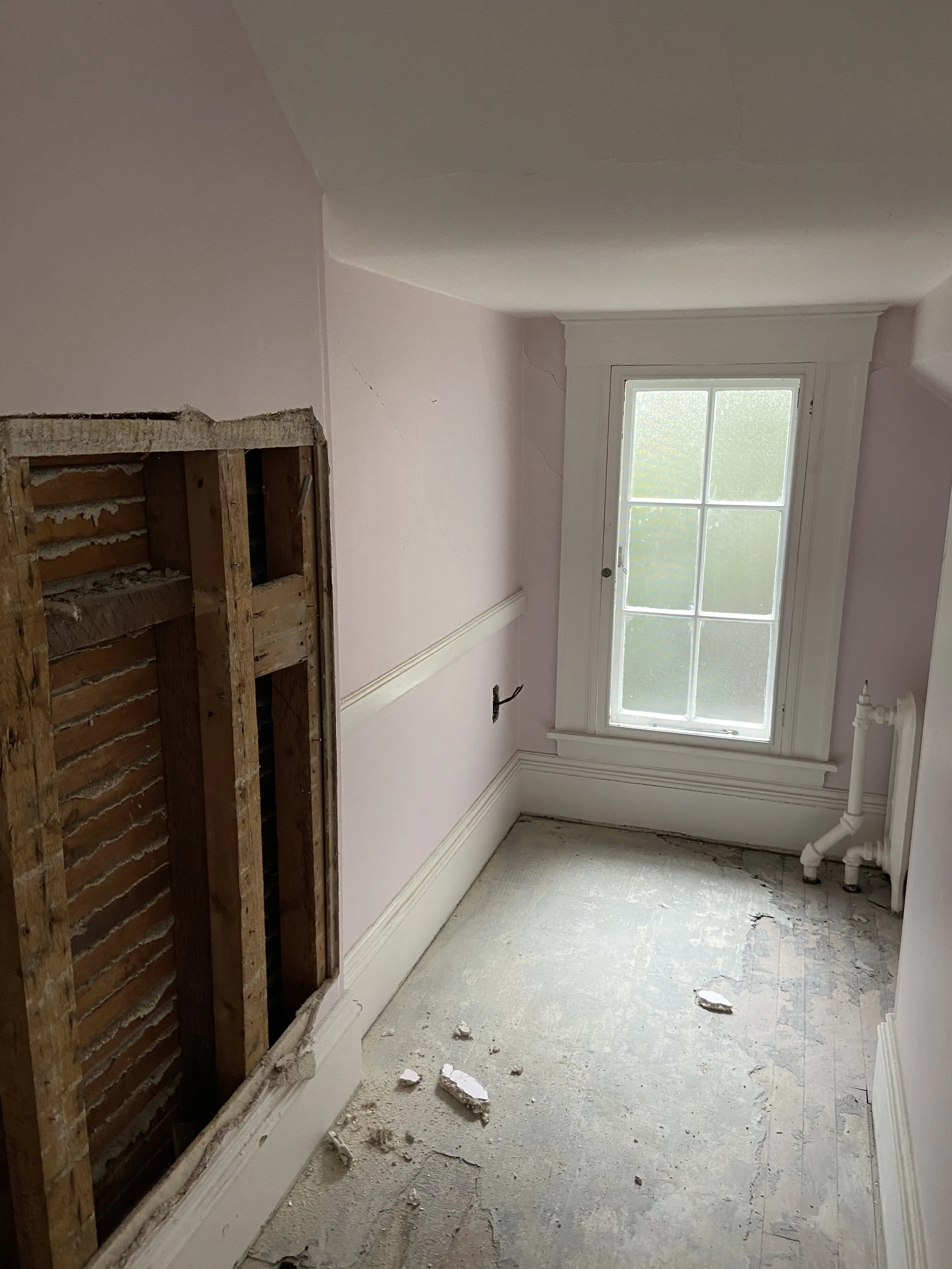 The before shot was taken from other end of the room but it shows how narrow the space is, making it the perfect spot for an office. We removed the existing built ins on the right and how cool is it that there’s a fireplace?!